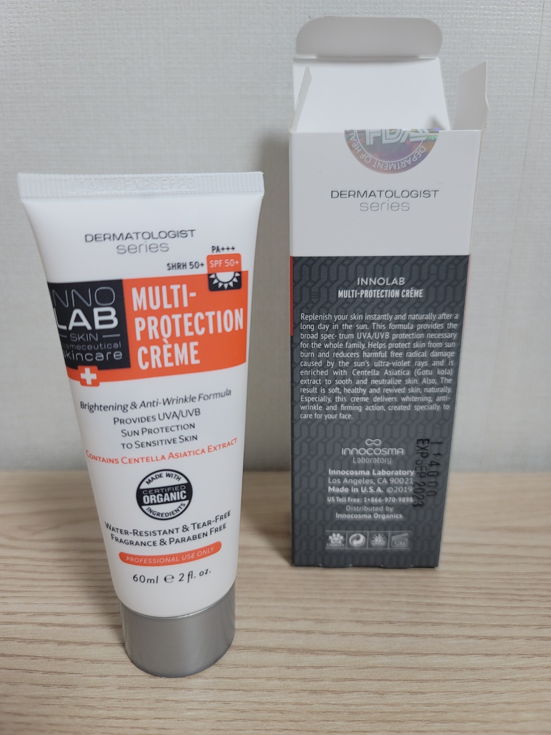 이노스킨랩 멀티프로텍션 크림은 MADE IN USA, 60ML이고, SPF 50 PA+++, 가격은 45,000원 이에요.